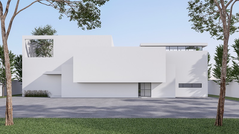 Zgradu treba naglasiti igrom svjetla, a ne drugim bojama ili teksturama. Ako postoje dodatne boje, to su obično siva i crna. To se može vidjeti u arhitektonskim elementima kao što su okviri prozora i vrata, krov itd. Postoje zgrade koje su potpuno ili uglavnom sive ili crne, ali to je prilično rijetko.